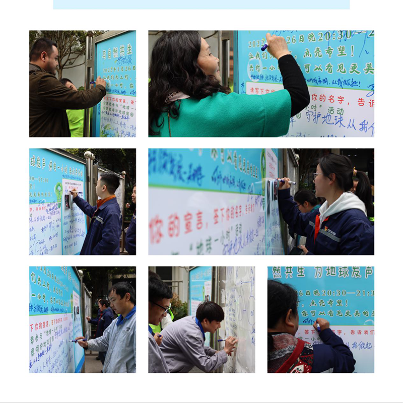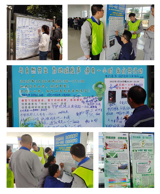 地球一小时(Earth Hour)是世界自然基金会(WWF)应对全球气候变化所提出的一项全球性节能活动。每年三月最后一个星期六的当地时间晚上20:30,关上不必要的电灯及耗电产品一小时,以此来表明应对气候变化行动的支持。振华新材为体现央企担当,工会联合可持续发展小组、公司行政部号召全体员工积极参与地球一小时的活动,进一步表达呵护地球家园的决心。3月25日中午十一点,振华新材全体党员、工会委员向员工科普“地球一小时”内容及意义,全体员工在宣传栏写下参与“停电一小时”活动的宣言及签名,活动现场氛围轻松活跃。