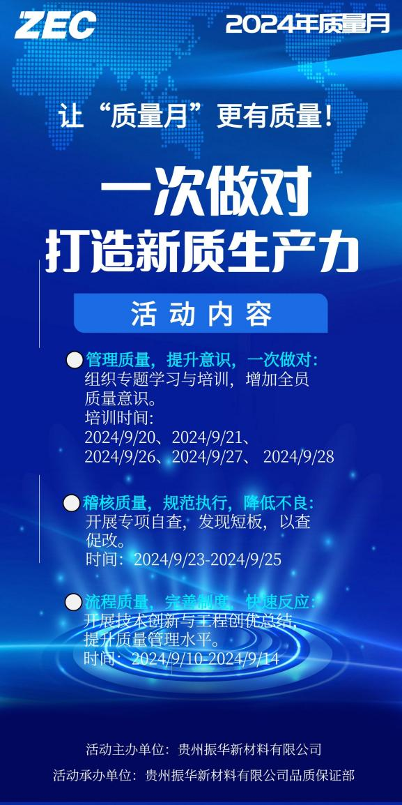 金秋九月,在全国第47个“质量月”活动中,振华新材围绕“加强质量支撑 共建质量强国”主题,积极开展系列活动,营造出良好的质量安全生产氛围,提升全员质量意识,推动质量创新发展。